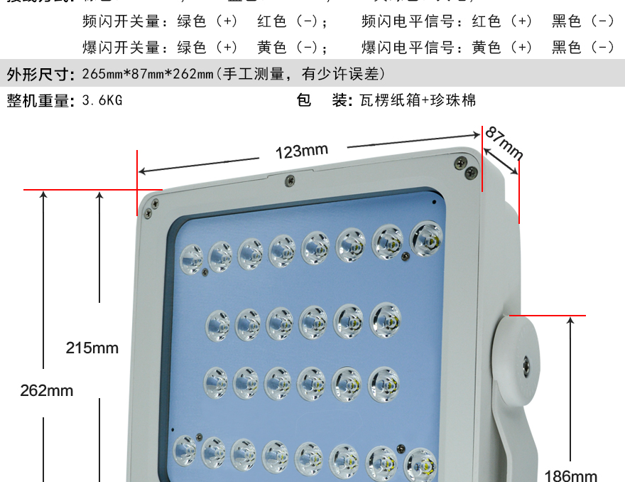 ★發(fā)光脈沖寬度可調(diào),適應(yīng)各種攝像機的曝光時間;