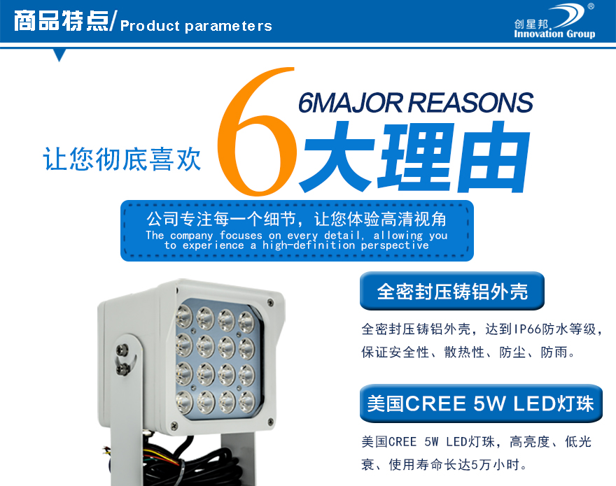 ★功率可調,根據現場光照環境調節燈光亮度,在滿足圖像效果的前提下盡量減少光功率,節能環保;